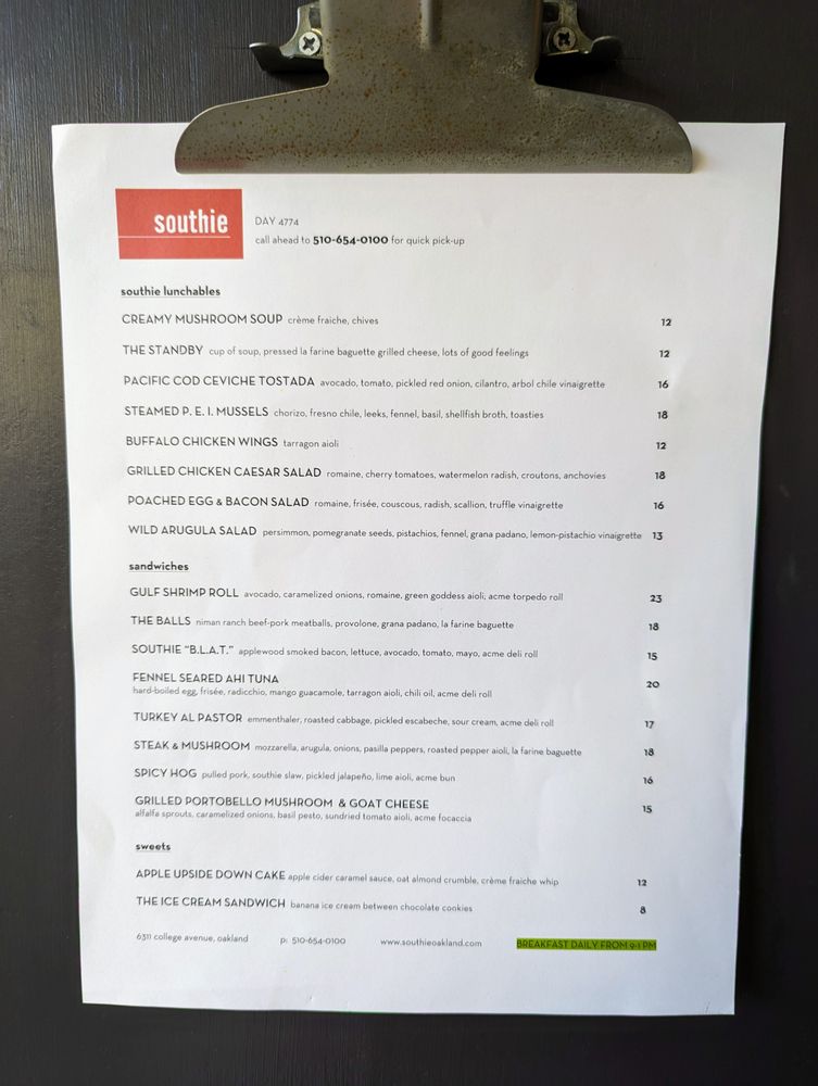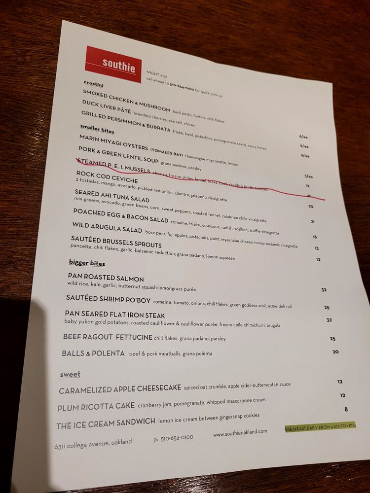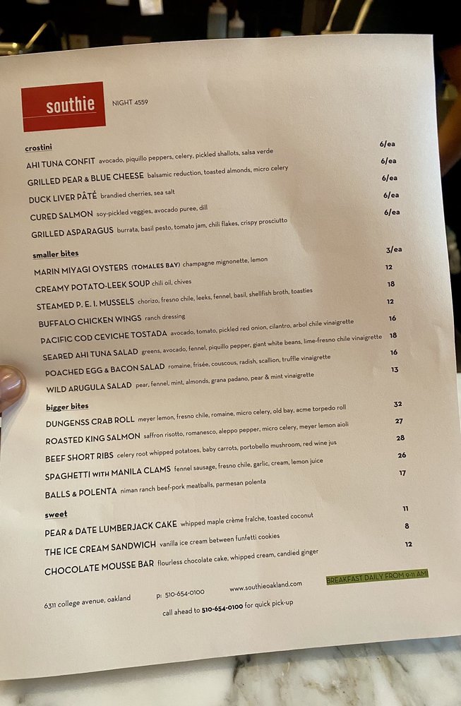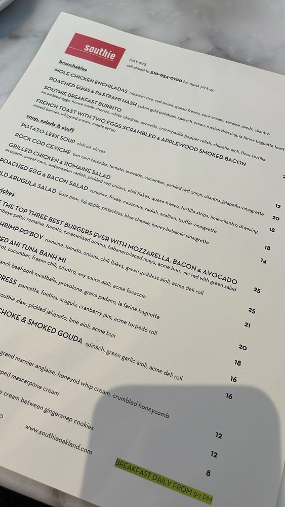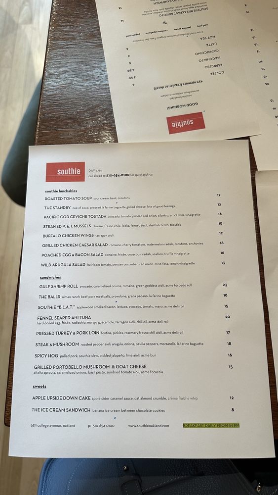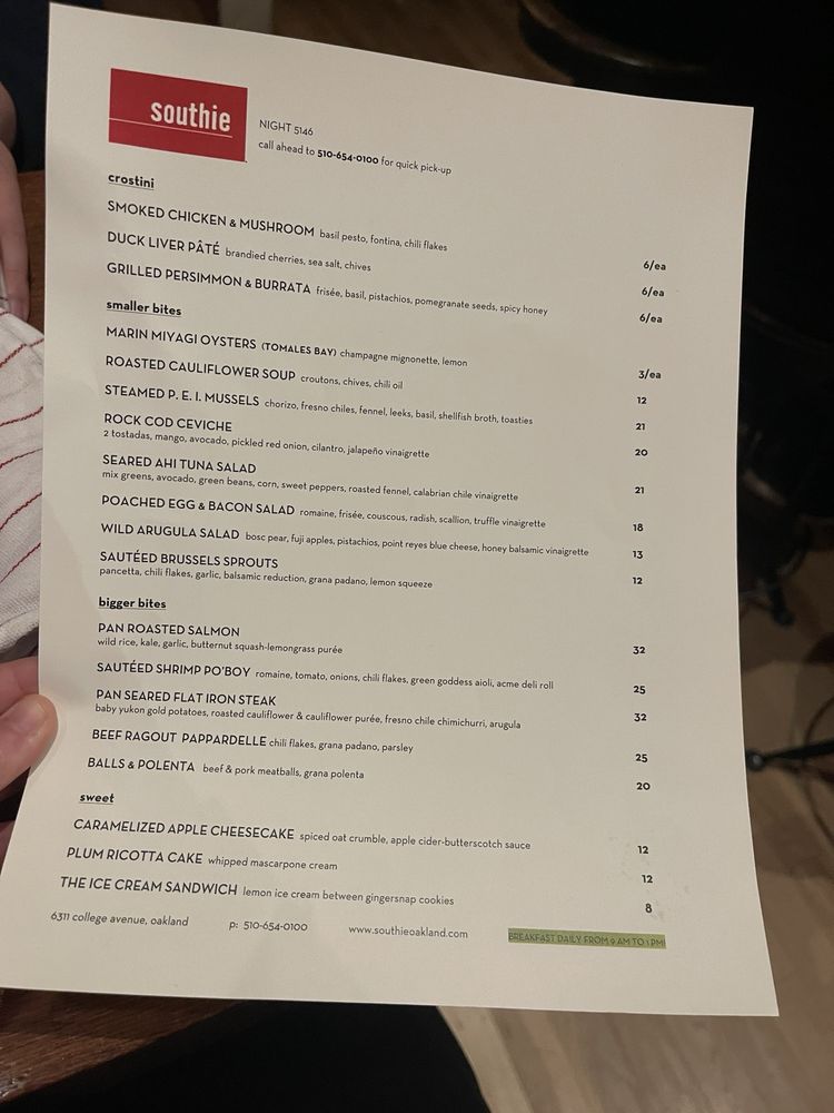 Introducing Southie, a vibrant addition to Oakland's culinary landscape, where New American cuisine meets a casual brunch atmosphere. At Southie, the menu celebrates creativity with standout dishes that evoke comfort and innovation. Start your experience with the Roasted Tomato & Bell Pepper Soup, perfectly complemented by a lemon-chive cream. For a light bite, indulge in the Yellowtail Tuna Crostini, elevated by fresh tomato-avocado salsa and a hint of chili oil. Carnivores will relish the Side O' Lamb Meatballs, enriched with hen of the woods mushrooms and harissa. Vegans will appreciate the thoughtful options, including delightful sides like Roasted Padron Pepper Crostini. Rooted in community, Southie is suitable for family gatherings or a casual outing with friends, enhanced by features like outdoor seating and a happy hour. Open to all, Southie transforms meals into memorable experiences, where every dish is crafted with care.